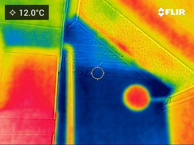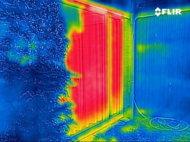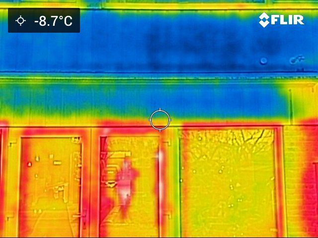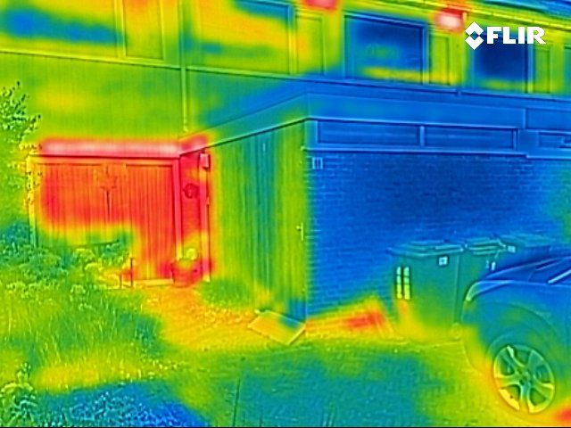 Bij warmtebeeldfoto’s welke vanaf buiten zijn genomen zal een warmtelek met veel warmteverlies met een rode kleur worden aangegeven, oranje/geel heeft minder warmteverlies. De blauwachtige kleuren geven aan dat hier minder warmteverlies is.