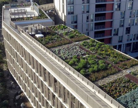 Een gebouw met een plat dak is een uitgelezen kans om te gebruiken voor opwekking van energie.